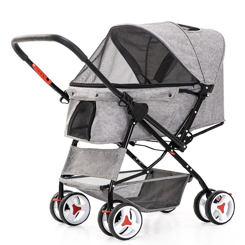Home > Four Wheel Folding Pet Stroller, Dog Jogger Travel Cats Carrier Adjustable Canopy Storage Brake Mesh Window